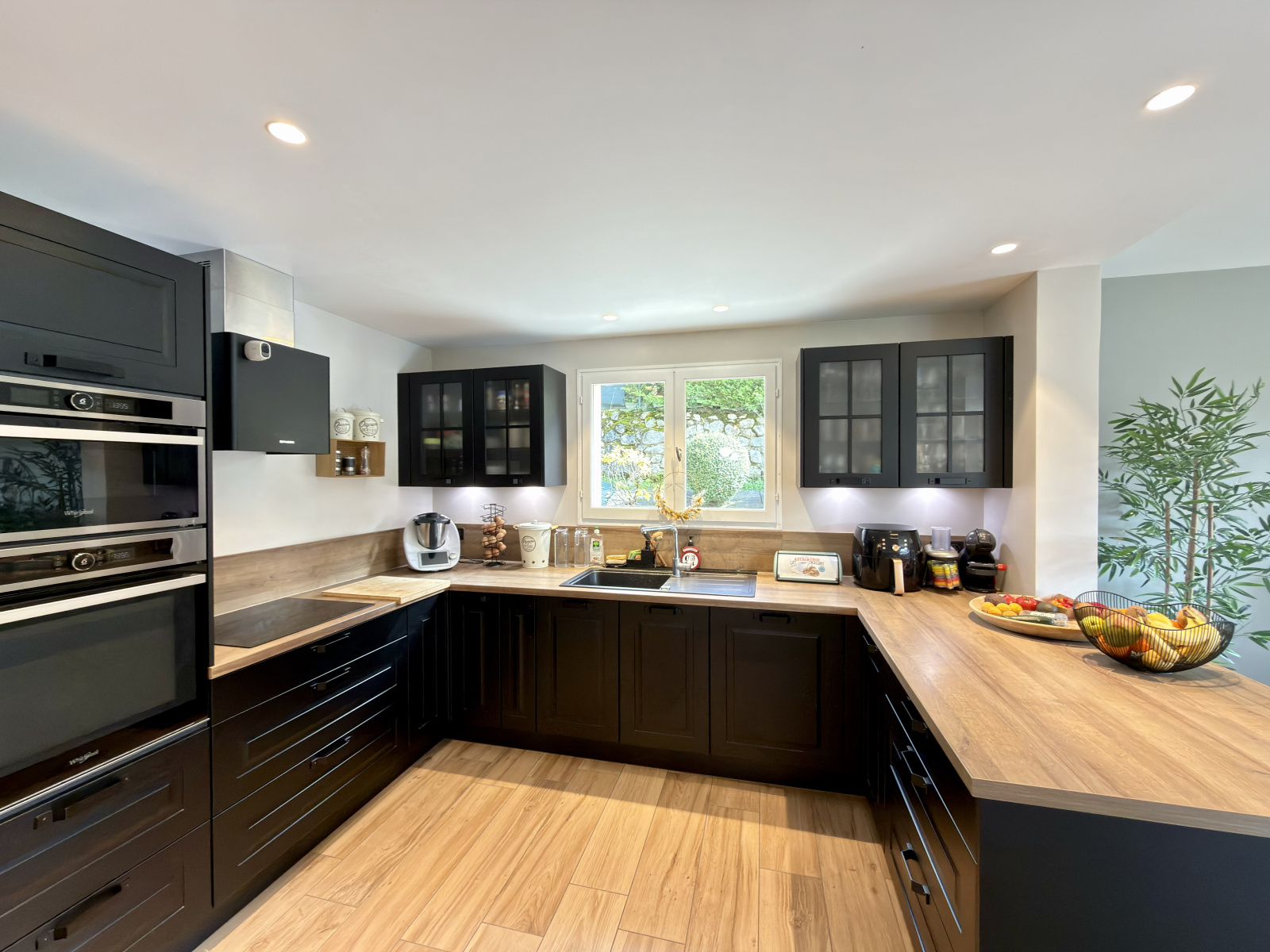 Les extérieurs, soigneusement aménagés, disposent d’une grande terrasse d’environ 90 m², d’un jardin arboré, d’un garage, d’un abri camping-car, d’un atelier, de plusieurs espaces de rangement ainsi que d’un potager et d’arbres fruitiers. Une large cour permet de stationner plusieurs véhicules.