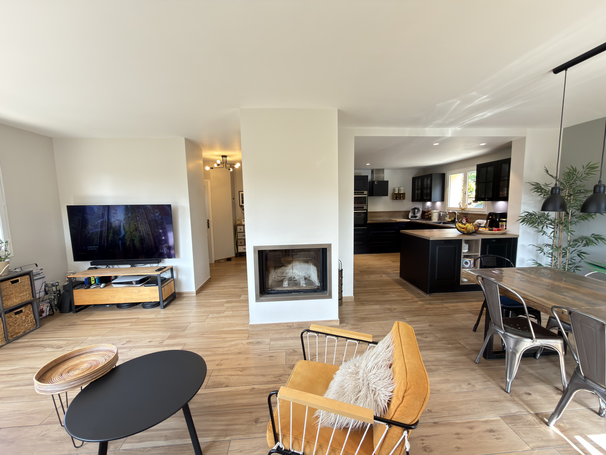 La maison développe une surface au sol d’environ 135 m² (plus de 220 m² utiles grâce à un sous-sol complet) et propose une organisation en demi-niveaux comprenant une vaste pièce de vie lumineuse de plus de 40 m² avec cuisine ouverte, quatre chambres dont une suite parentale avec dressing, deux salles de bain et deux WC indépendants. Le sous-sol d’environ 100 m² offre de nombreux espaces fonctionnels : cave, buanderie, chaufferie et zones de stockage.